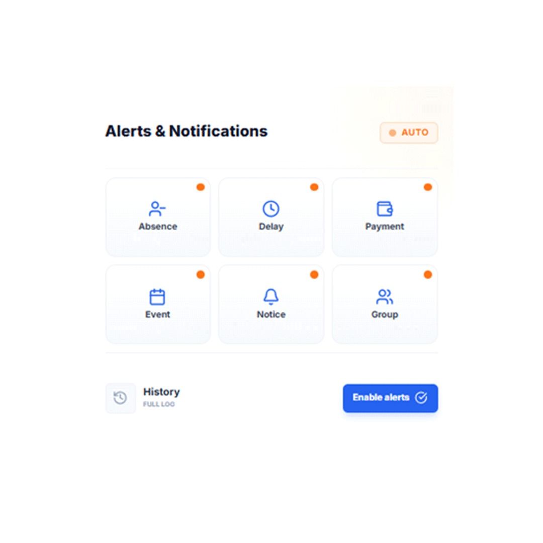 Enrollment management: students, levels, and groups fully synchronized. Integrated communication: emails, notifications, and automatic reminders. Billing & payments: clear and secure tracking. Unified data: no duplication, no data loss.